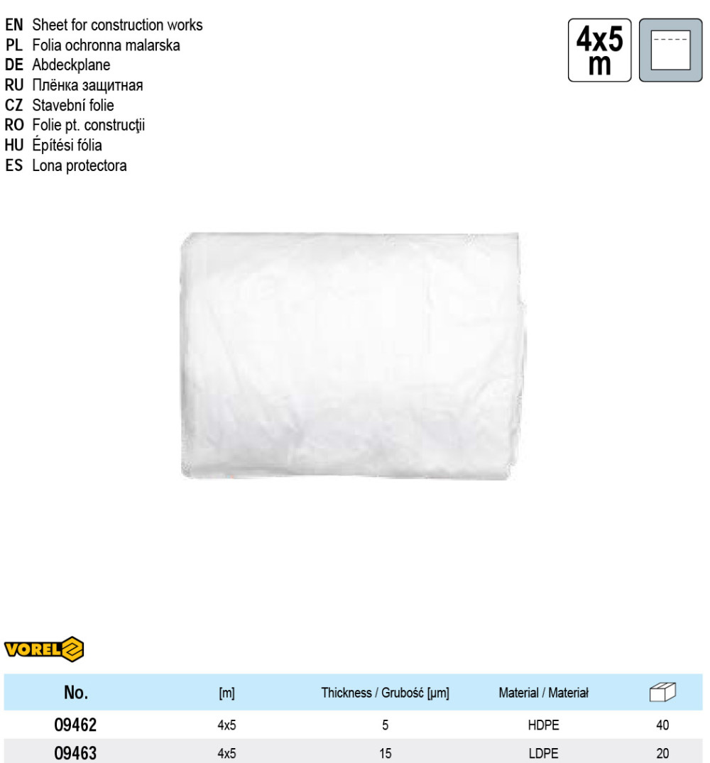 Vorel 09463 építkezési takarófólia 4 x 5 m