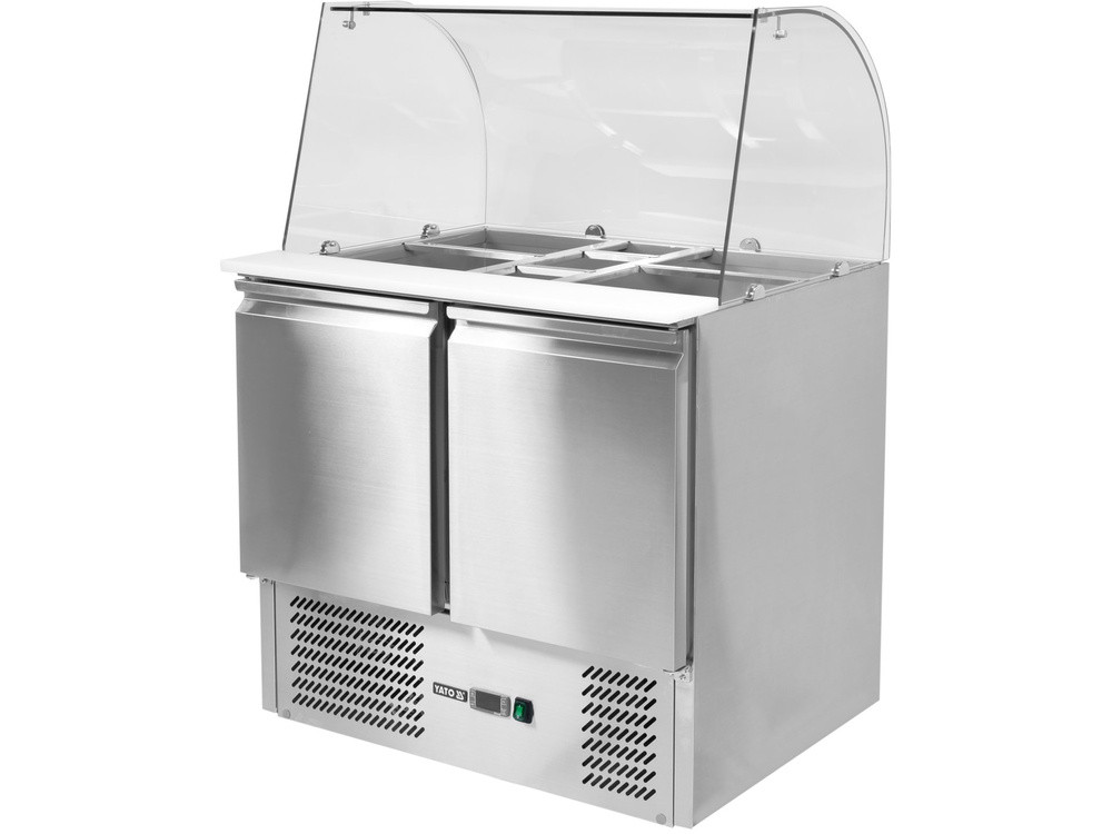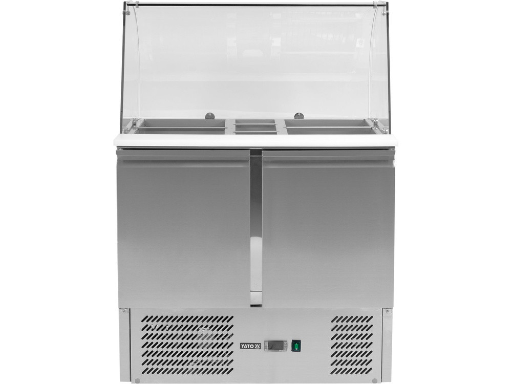 YATO YG-05260 Kétajtós rozsdamentes hűtőasztal üveg tetővel 900x700x850mm