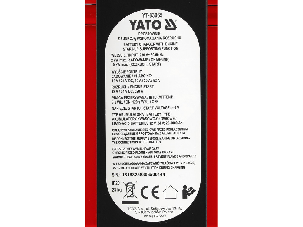 YATO YT-83065 Akkumulátor töltő és indító 12/24V 230V 20 - 1000Ah