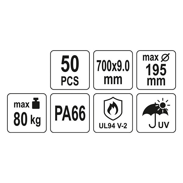 YATO YT-70658 Kábelkötegelő fekete 700 x 9,0 mm (50 db/cs)